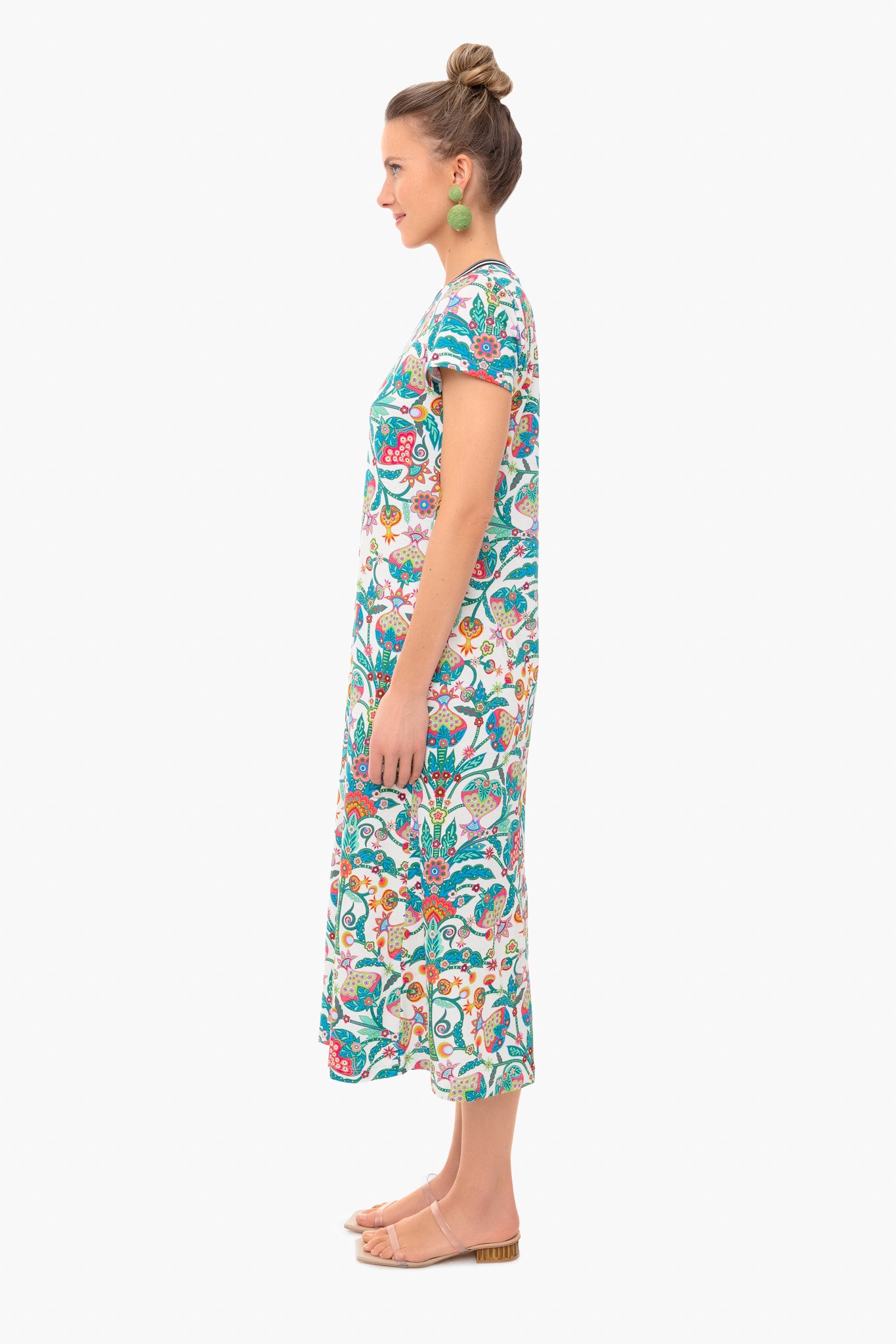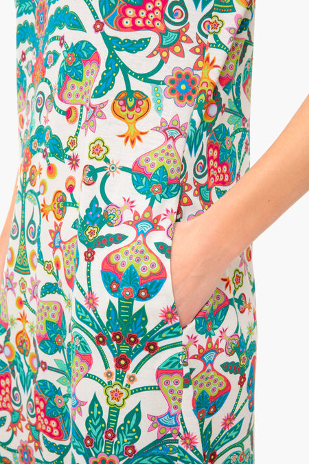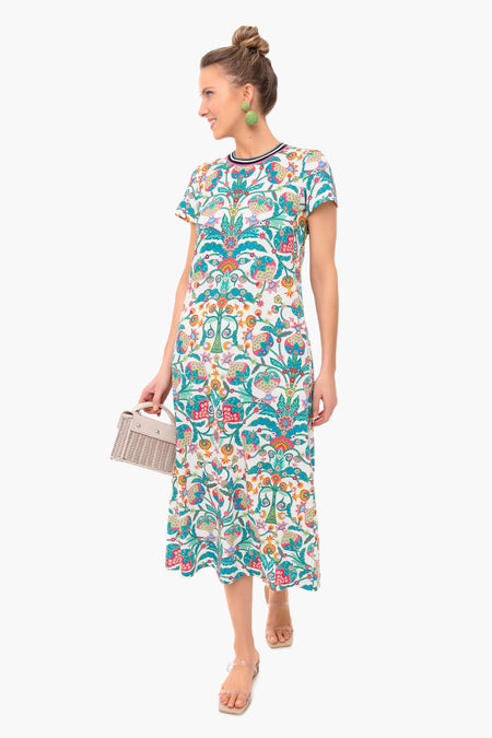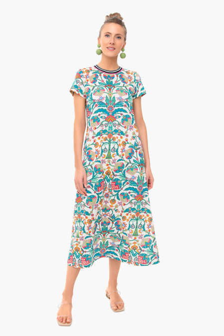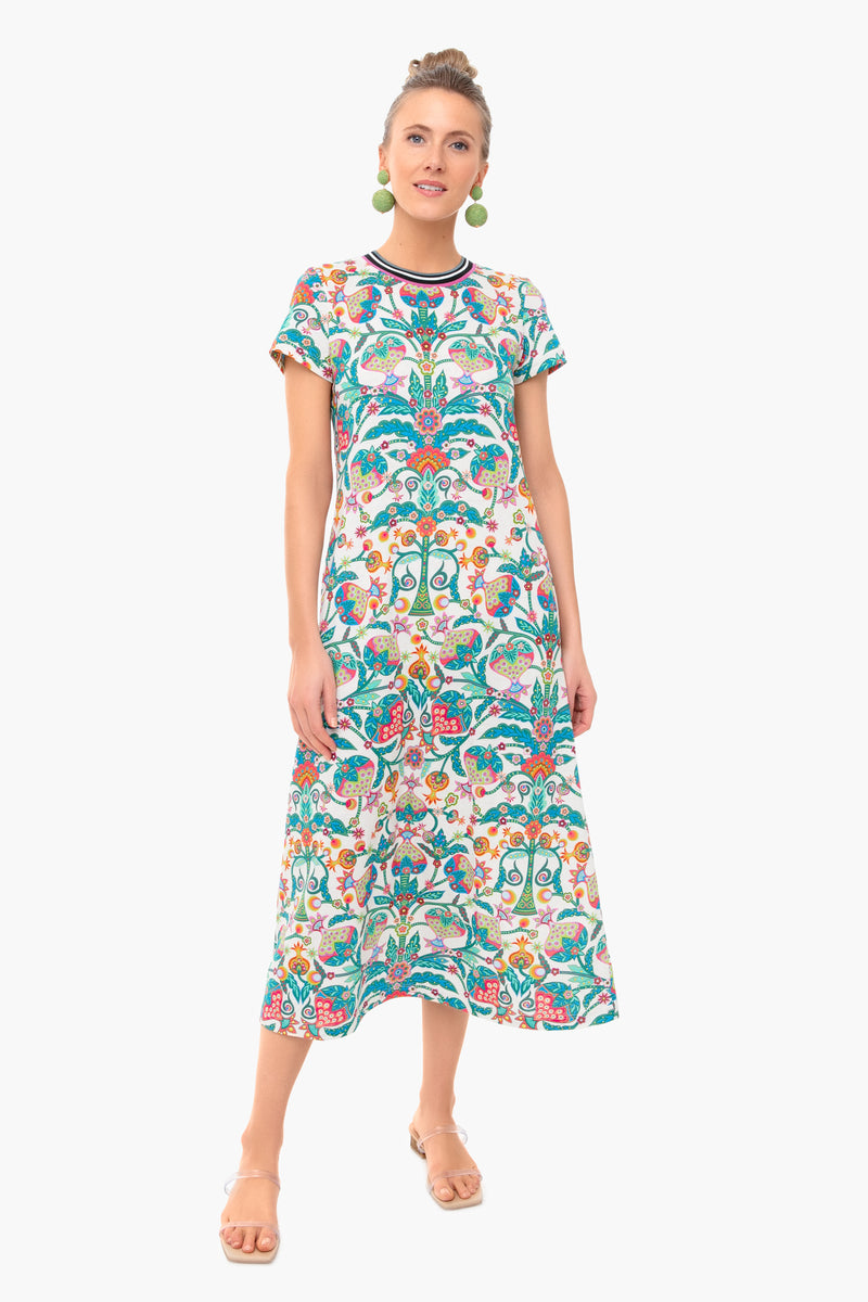 The Tree Of Life Bianco Sporty Swing Dress is made from soft jersey cotton for a relaxed, comfortable fit. Easy for everyday wear, this midi is stretchy across the shoulders with a striped, ribbed collar. Bold and beautiful, this style pairs well with colorful jewelry and sandals.