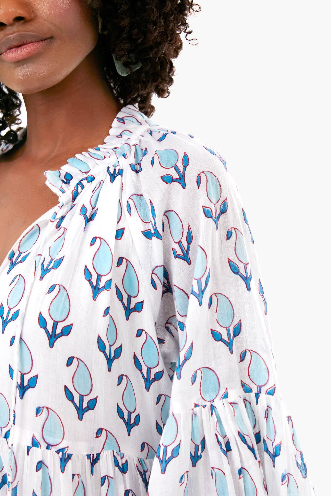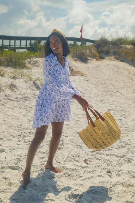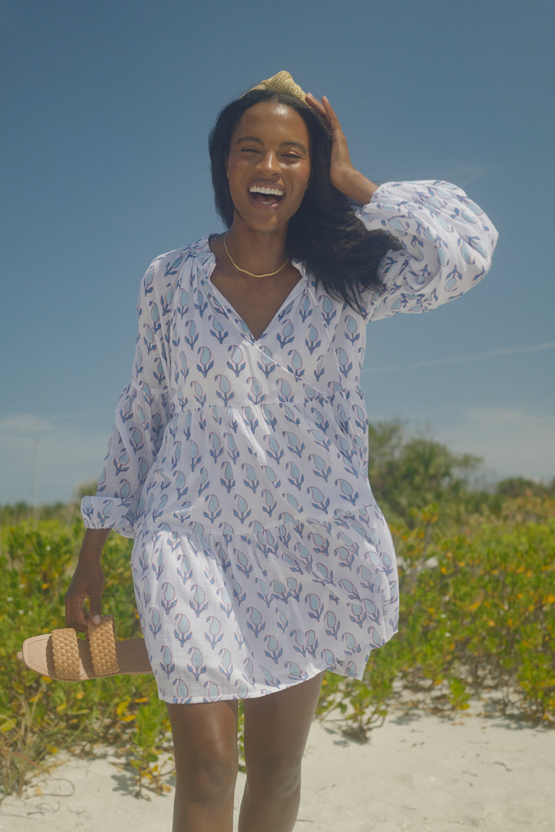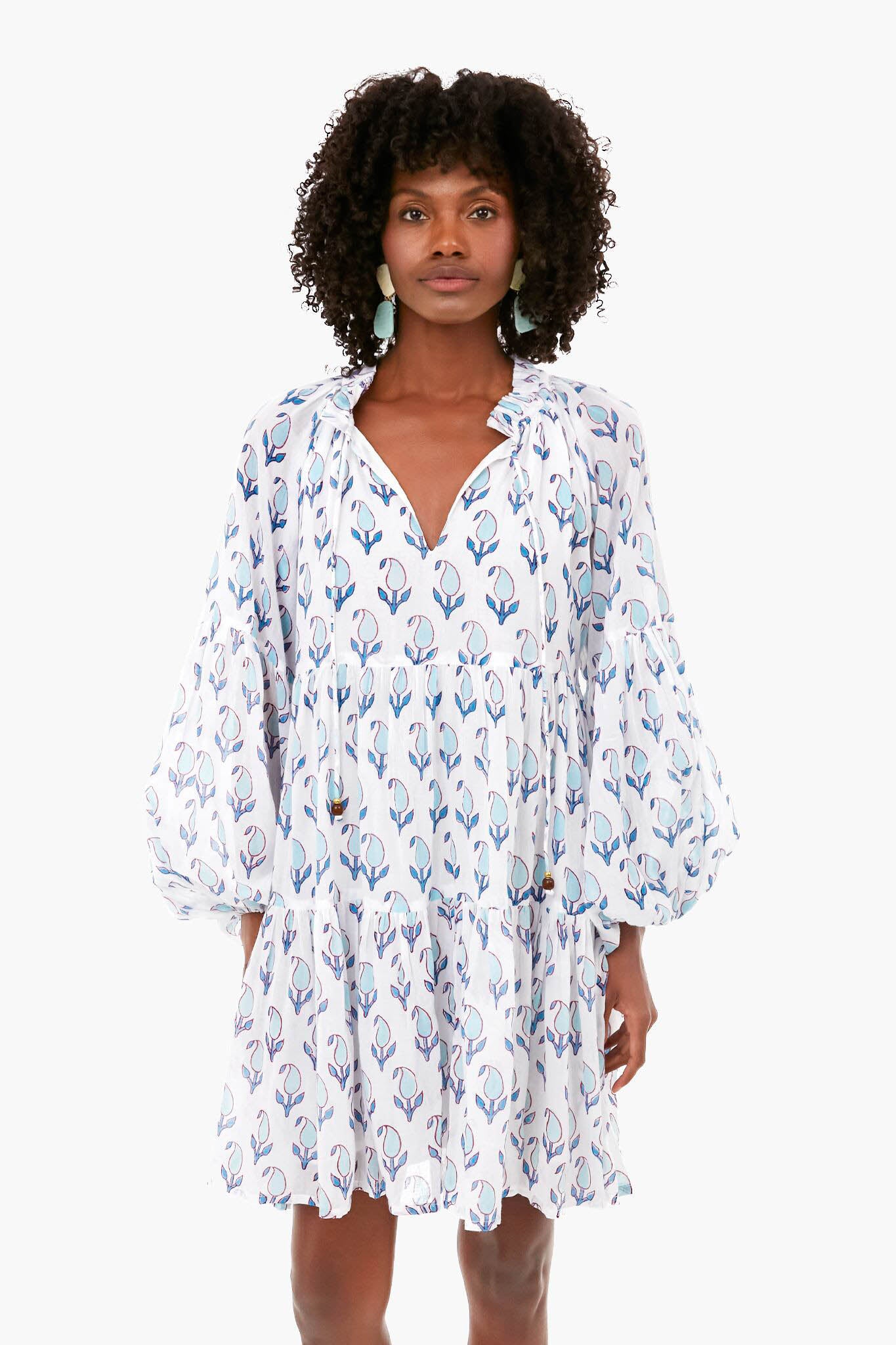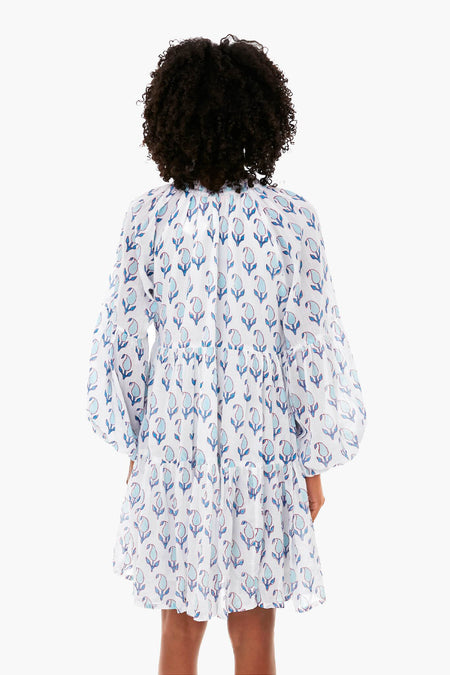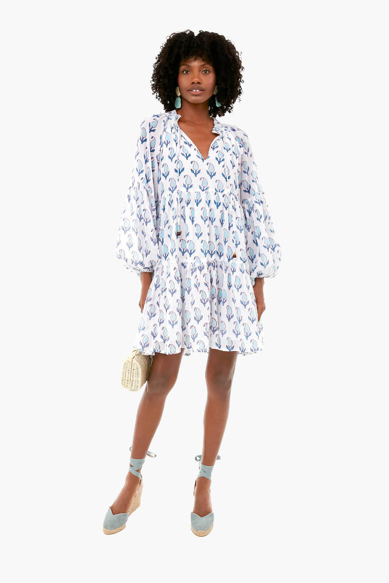Tulip Blue Balloon Sleeve Short Dress