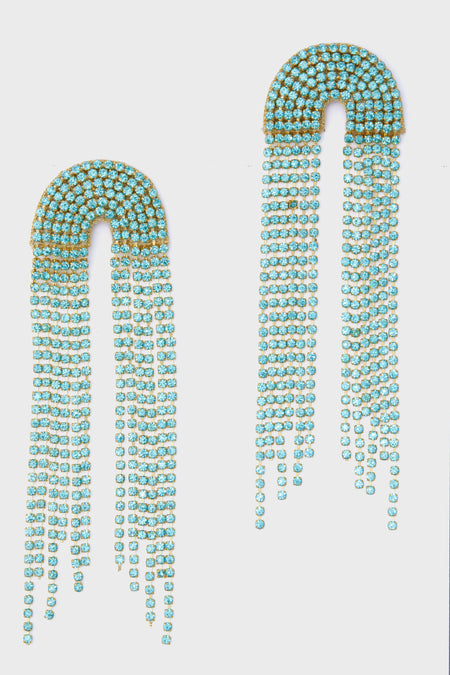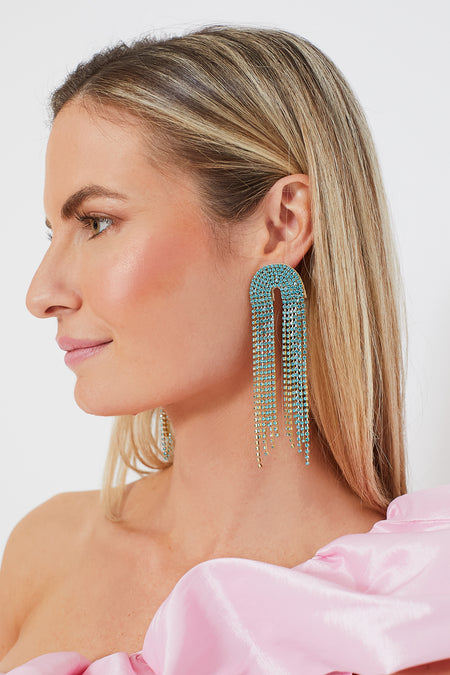 Add a little drama to your look with the standout Turquoise Warren Earrings. These breathtaking drops feature swingy strands of glimmering crystalline fringe for the perfect blend of whimsy and glam. An easy way to elevate an everyday look or take a bold one over the top (while garnering plenty of compliments all the while), these pair well with everything from basic blouses to daring dresses.