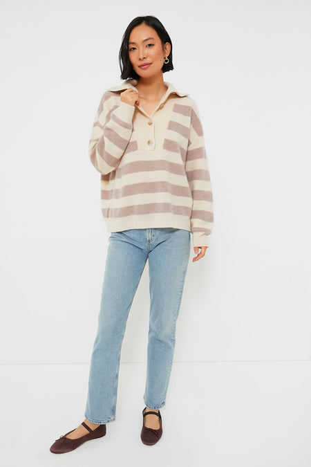 Striped Delight. The Vanilla Mauve Walden Stripe Cashmere Rafferty Sweater by XiRENA is made in a luxe, ultra-soft cashmere. This artisanally ribbed pullover sweater features a contrast wide collar and front yoke with a partial button-front. Pair with denim and sneakers for an easy day-time look- this is sure to be a staple during the cold-weather months.