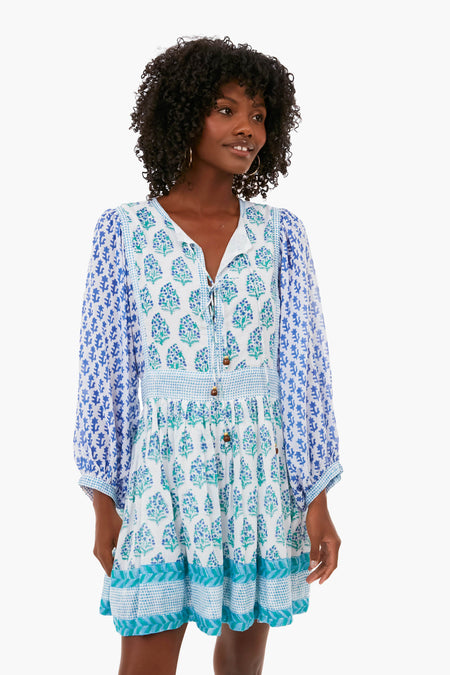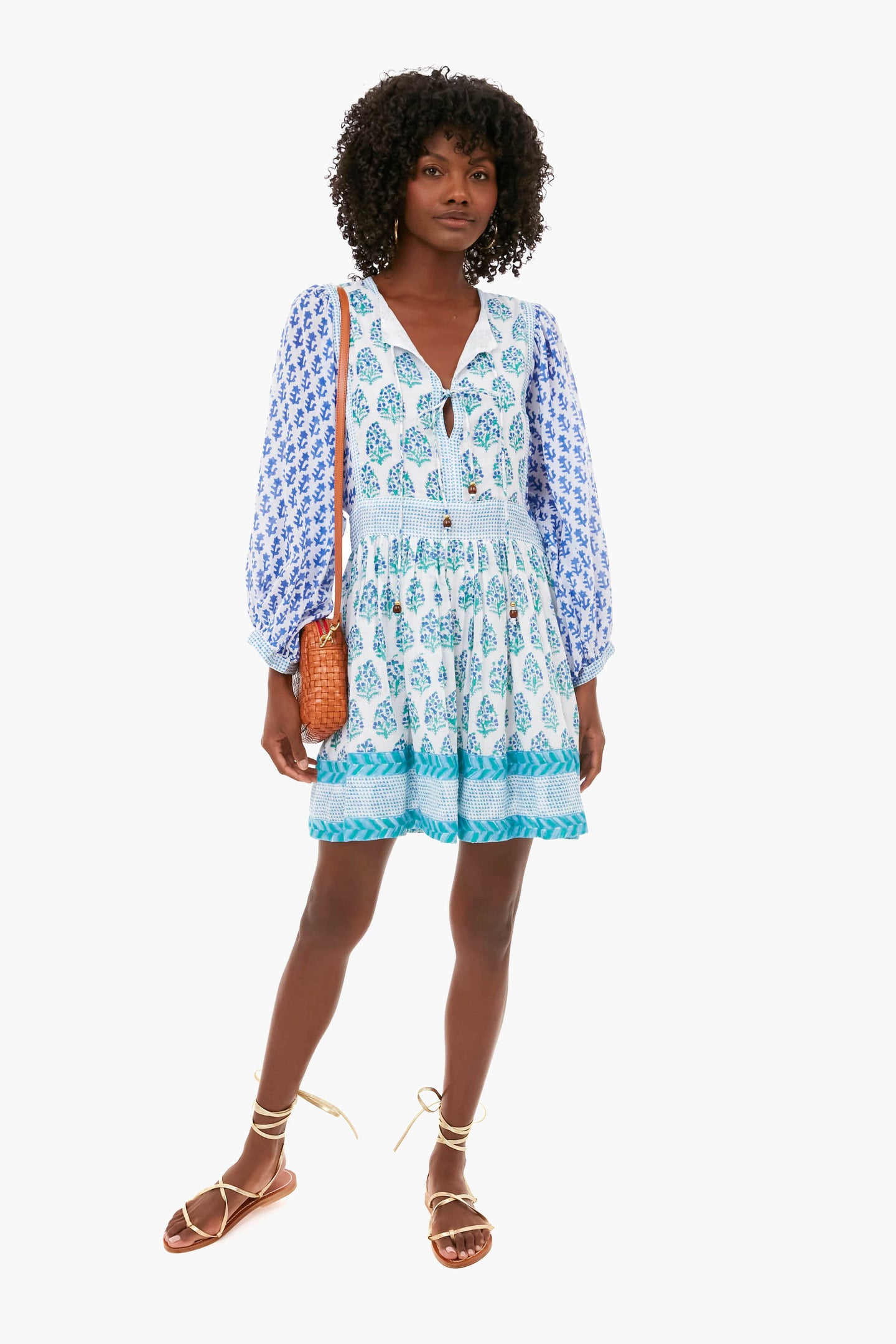 This Balloon Sleeve Short Dress is made with luxuriously soft cotton in a fresh and fun print. The pullover dress features a tassel tie neck, elastic cuff balloon sleeves, and a tiered skirt for added movement. From poolside to palomas, this will be your all-day companion.