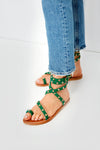 The Vert Skadipyr Sandals are strappy and sassy thanks to their rich green hue and stud-decorated straps. Designed with a toe and foot strap to keep you securely in place and an adjustable ankle buckle for a customizable fit, these are not only super-chic but also comfortable enough for all day wear. Dress them up with your go-to cocktail dress or down with denim for an edgy, yet classic feel.