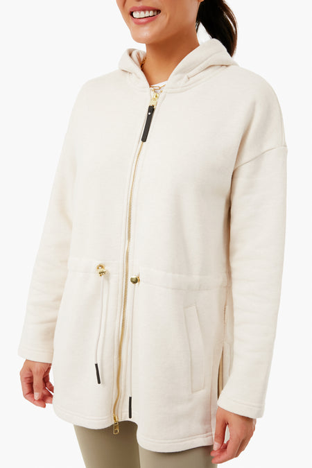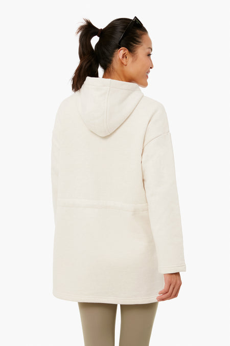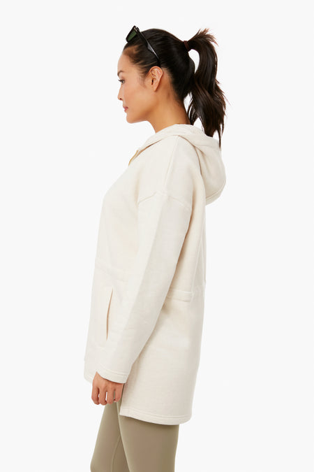 Cut in our beautifully soft brushed sweat and designed for layering, the Victoria Hoodie is an oversized, longline jacket with a generous hood and pockets. This style features deep side-slits and a drawcord to cinch the waist as desired, while a luxe two-way zip ensures maximum comfort and versatility. Throw over leggings and a sports bra for a chic workout look.