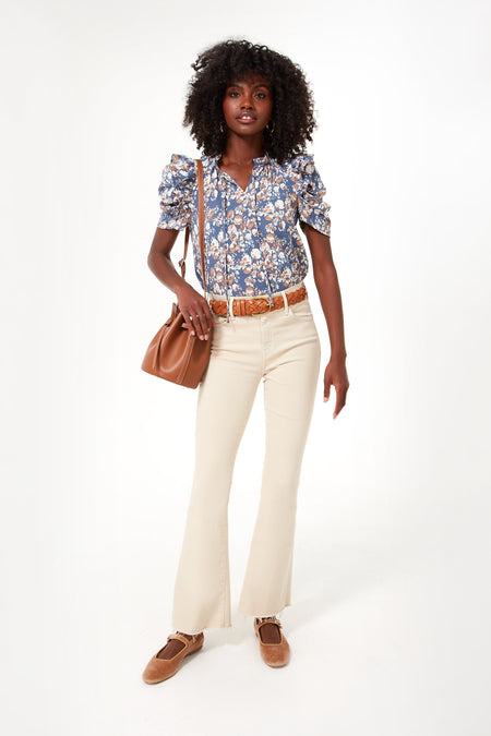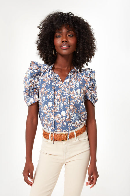 Lean into feminine florals and darling details with the Vintage Blue Loire Top. Featuring a charming botanical print in wearable shades perfect for the coming season, this easy blouse has ruching details at the puffed sleeves for a bit of added dimension and an element of fun. With a slightly cropped hem that was made for high-waisted denim, this number is sure to be on repeat in your closet. Pair with denim and a tote for a day of retail therapy with the girls, or with trousers for an updated office look.