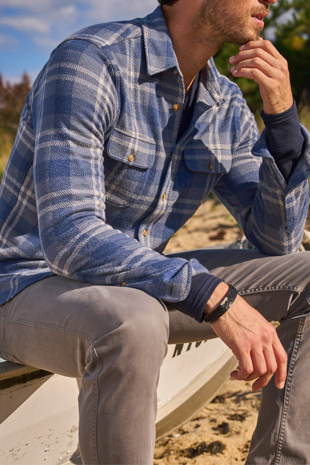 The Vintage Blue Plaid Legend Sweater Shirt is crafted using an incredibly soft and stretchy knit and is cut into one of the most comfortable and versatile flannels you’ll ever wear. Perfect for fall layering and super cozy, we can’t get enough of this style.