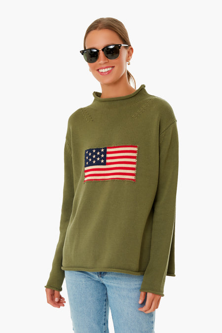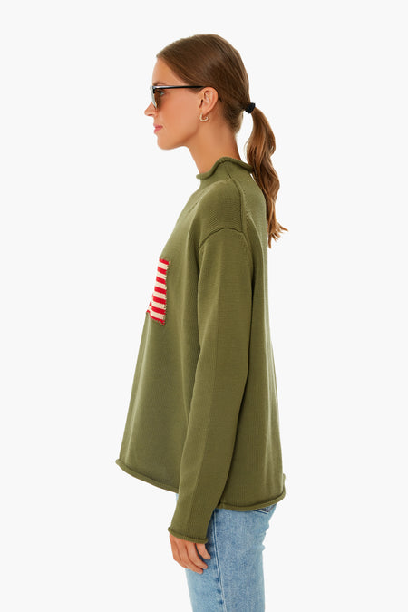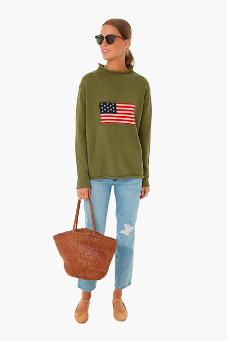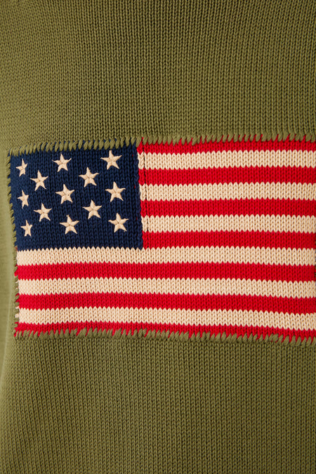 Perfect for cool weather and reminiscent of football games and vintage crewnecks, the Americana Sweater is a wardrobe essential. This cotton pullover features a rolled detail at the neck, sleeve, and hem, as well as drop-seam shoulders and an American flag at the center. Pair with denim and sunglasses for a classic look this season.
