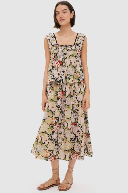 A dreamy nod to vintage charm, the Vintage Rose Canary Skirt is all about delicate details and effortless flow. A smocked waist band with rows of channeled elastic, a delicate picot edge ruffle, and a romantic floral print, this midi is perfect for sun-soaked strolls or weekend getaways. Pair it with the Vintage Rose Victorian Pleat Tank for a breezy, feminine set, or style it with tank and sandals for a relaxed yet polished look.