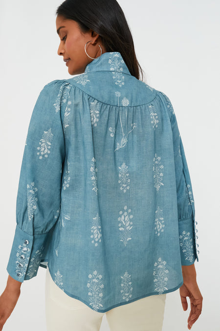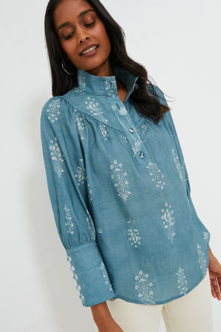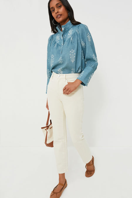 The Weathered Meadow Rue Corrigan Blouse is decorated in contrast floral motifs, making it the perfect piece for a closet refresh. This updated classic features a stand collar with puffed shoulders and unique clear round buttons at the cuffs and placket for a chic, modern look. We love wearing this for an easy desk to drinks look, easily swapping from flats to heels and adding gold accessories for a dash of subtle glam.