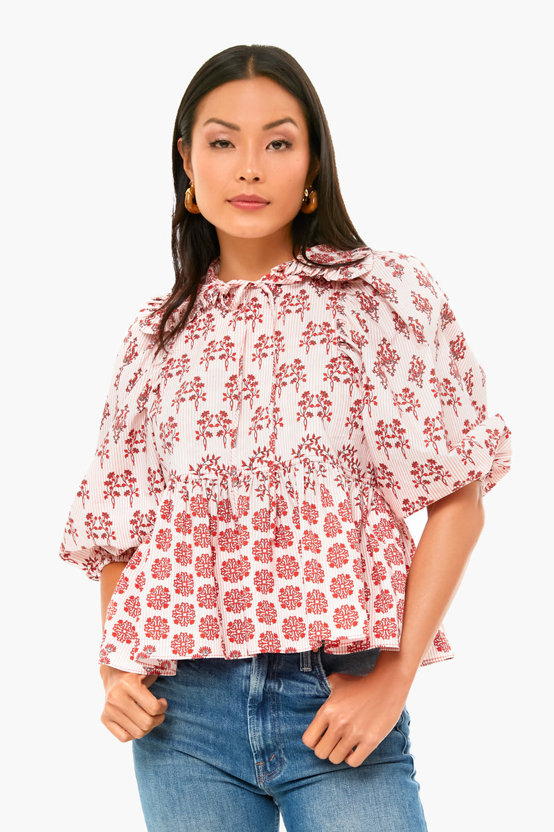 The Dakota Top embodies all our favorite trends for the season ahead. Featuring an oversized, detachable ruffle collar, puff sleeves, and a peplum flare, this blouse is sure to be a statement-making favorite. Add denim and unique shoes for a fun look for dinner with friends.
