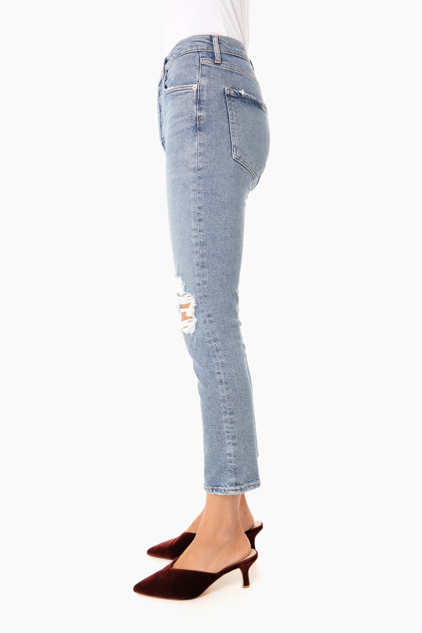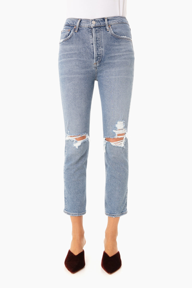 AGOLDE focuses on design, sustainability and comfort while seeking innovation from the classics. The Whiplash Riley High Rise Straight Crop features a signature straight leg silhouette with a better-than vintage aesthetic. Crafted from stretch denim in a distressed light wash, you’ll want to wear these jeans to everything from brunch to picnics!