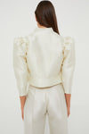 The White Amoako Smart Jacket is distinguished by its impeccable vintage-inspired cut and a well-defined silhouette. Featuring a satin like finish, puff three-quarter length sleeves, and a peplum hem, this number guarantees to garner you a compliment or two! Style with the White Yoshitomo Smart Pants as a set to wear to your engagement party or pair with a pop of color pants for any formal occasion coming up.