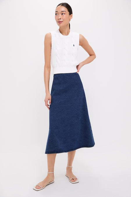 Cable-knit with soft, combed cotton, this crewneck sweater vest is cut for a modern cropped fit. Perfect for layering or wearing on its own, we are pairing it with everything from crisp button downs to flirty mini skirts.