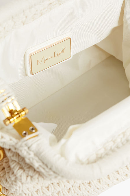 A fun yet elevated accessory, the White Christabel Bag is a grab-and-go style that's ready for any occasion. This ultra-versatile neutral woven silhouette can be worn as a crossbody or a shoulder bag with the gold-tone metal chain, or it can be tucked inside to form a slouchy clutch. We love how it looks when styled with denim and a chic top for happy hour with the girls, or with a printed dress while on vacation or celebrating something special. Throw your essentials inside, then all you have to do is focus on having a great time!