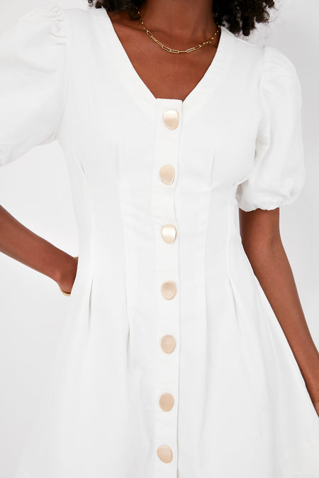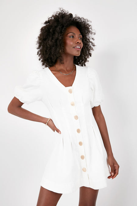 Elevated meets throw-on-and-go in the Emelia Dress. Featuring a button front design, pintuck details at the waist and on-trend puff sleeves all in a structured denim-like fabric, this crisp white mini is sure to be on repeat this season. Pair with flats and a crossbody for a picnic outing, or swap into heeled sandals and a clutch for an dinner!