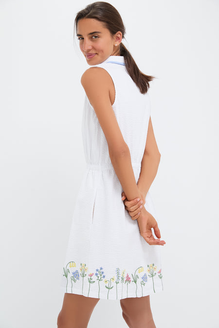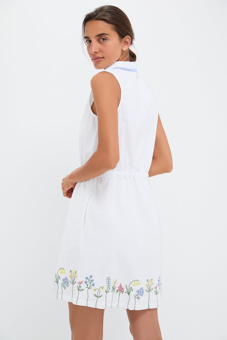 White Embroidered Sleeveless Performance Seersucker Alcott Golf Dress