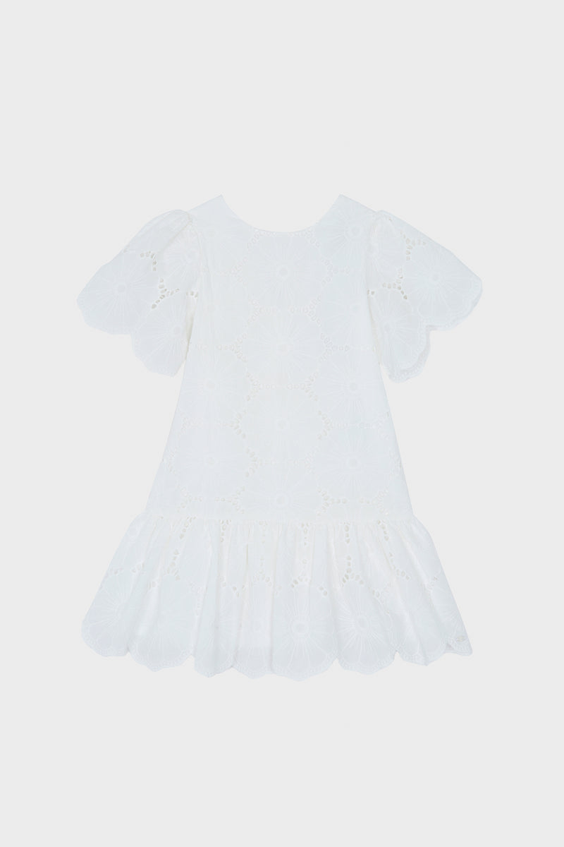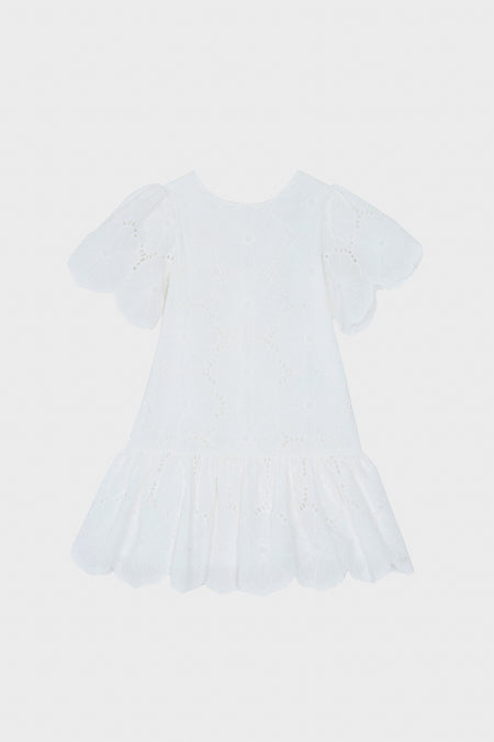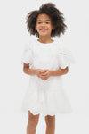 The White Eyelet Dress is the perfect summer dress for your little one, With a delicate loral print, eyelet detailing, and a puff sleeve, perfect for a special occasion in the summer, your little one is sure to love this dress!