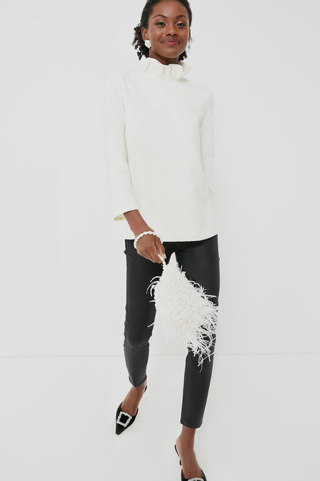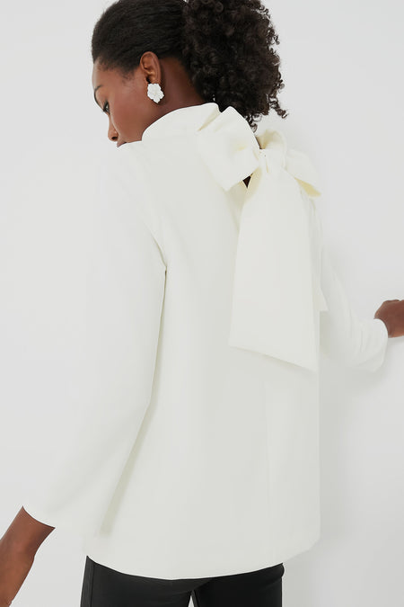 A Tuckernuck style staple, the Faye is back and better than ever. Our design team spent months perfecting and testing our signature stand collar to get it just right. As Marvin Gaye once said: "Ain't no collar high enough," so bring on the ruffles and drama! Updated in a beautiful stretch crepe fabric, this swing shape blouse reminds us of our favorite mod silhouettes from the 60s and 70s. Ready for al fresco dinners with family, cocktail parties with friends, and every social event on your calendar, the occasions are endless for this bow tie-back top!