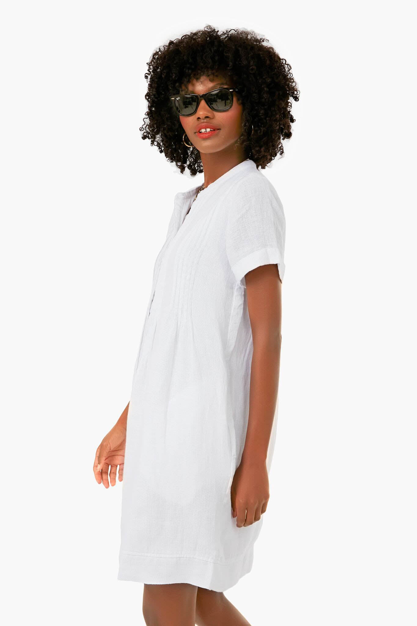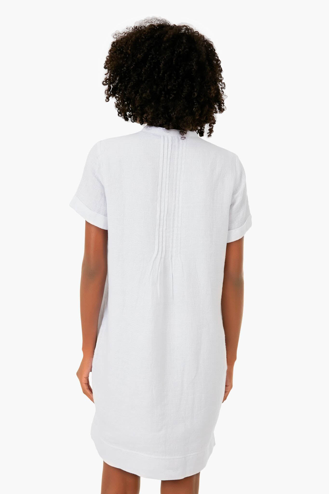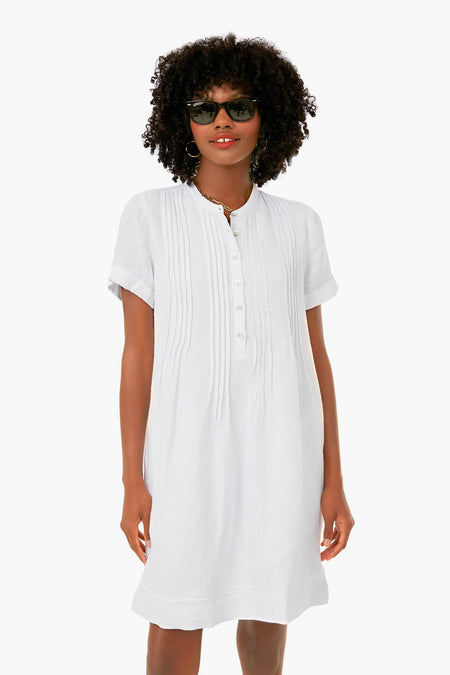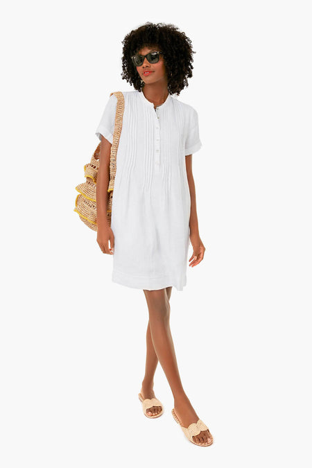 The soft and lightweight Gemina Dress is the perfect daytime outfit for warm-weather adventures. Featuring feminine pintucks at the neck and shoulders, as well as a button front placket, the beautiful details on this piece add subtle interest to a classic linen silhouette. Easy to wear, this look can take you from a morning coffee run to a backyard BBQ with a quick change of accessories.