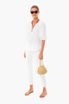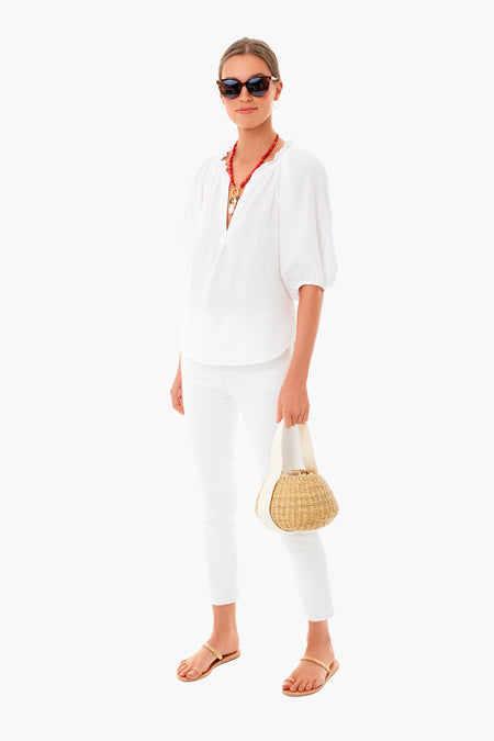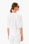 The White Jules Blouse will have you dreaming of picnics and backyard BBQs. This style is an easy popover in a neutral hue featuring a ruffled neckline and bubble sleeves with elastic cuffs. Easy and casual, this top is perfect for all of your activities!