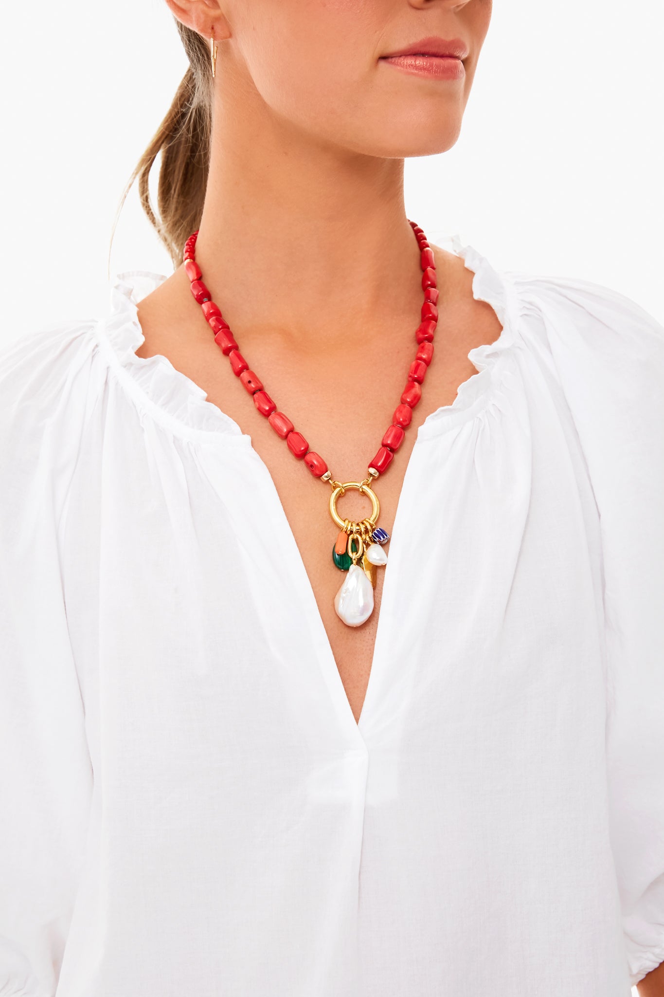 - Ruffled neckline