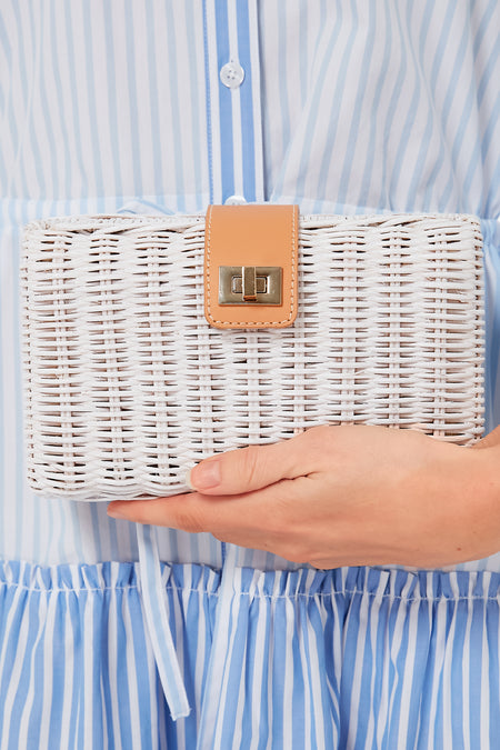 Versatile and chic, the White Lou Clutch can be dressed up or down, making it the perfect addition to any outfit in your wardrobe. This bag is handcrafted from natural woven rattan using a time-honored Filipino basketweaving technique, making it truly a unique and special piece. With gold toned turn lock closure to keep you belongings intact and an optional chain strap for multiple styling options, Lou is the perfect choice for any occasion.