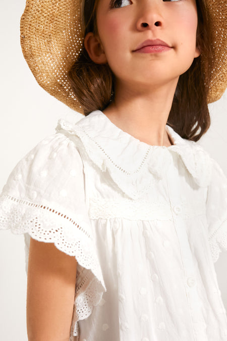 Lovely and chic, elevate your little fashionista’s wardrobe with the White Marla Dress. Boasting a tiered silhouette, short flutter sleeves and lace trim all over, this adorable mini is chocked full of details. Perfect for special occasions and family pictures, style it with a bow and sandals for a stylish look that will have your kiddo feeling like a princess.