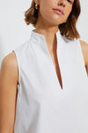 The White Celeste Top is a season-less piece to add to your wardrobe. Featuring a sleeveless silhouette with a flattering v-neck and swingy hem, this chic number is equally appropriate for work and play. We love to pair it with a sweater thrown over the shoulders, jeans, and sneakers for an effortless cool-girl look.