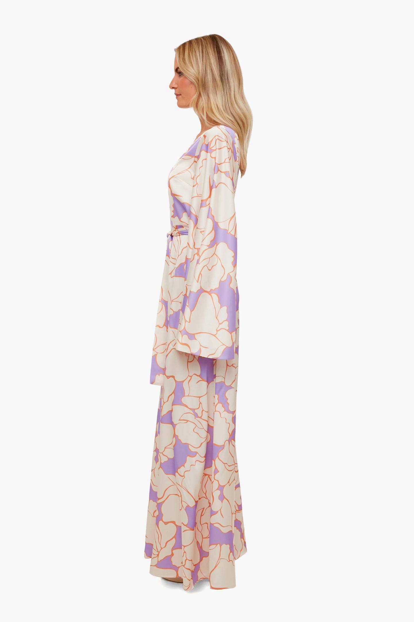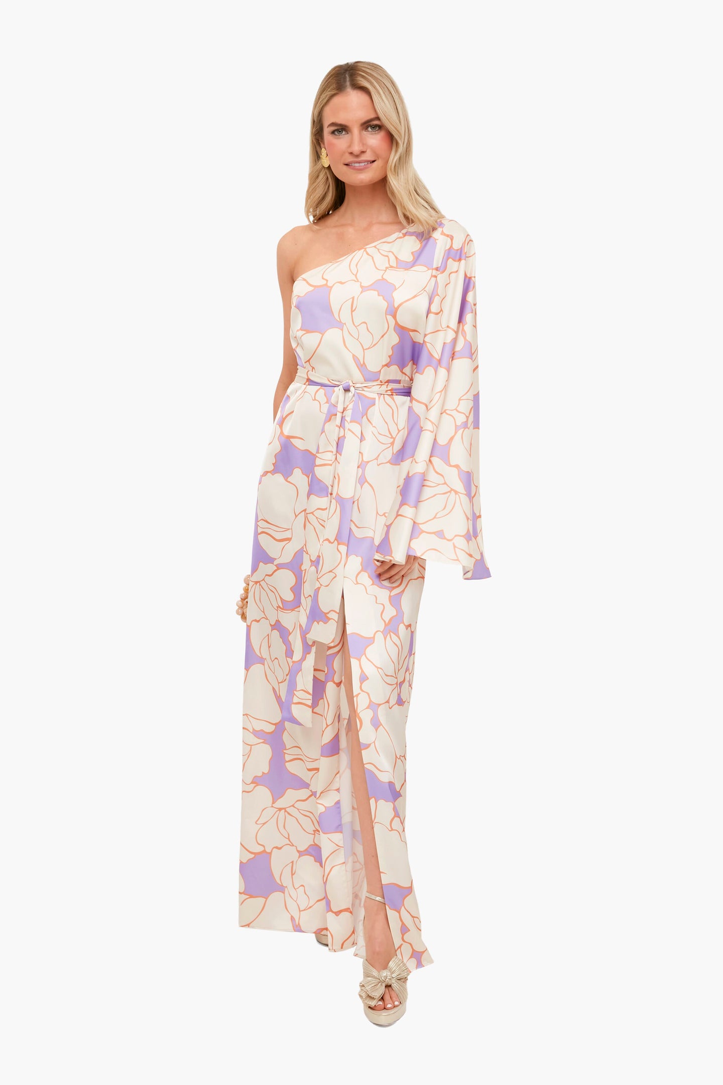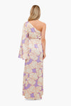 Simplicity is the ultimate form of sophistication with the Wisteria Leonette Dress. This elegant gown is beautifully printed with an asymmetrical silhouette, center slit, belted waist, and a single full sleeve. Its effortless style only needs statement earrings and sandals to finish off the glam look.