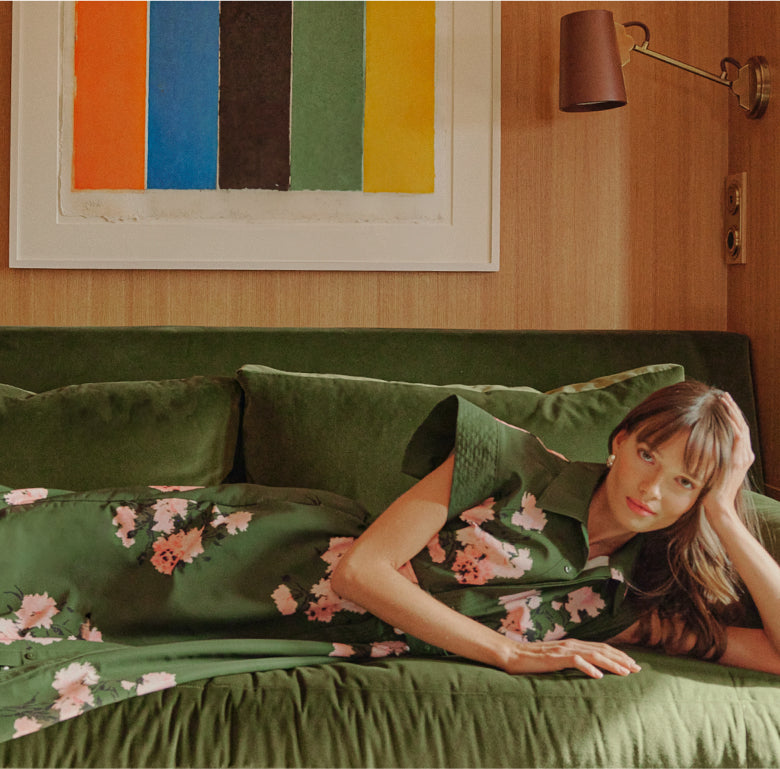 Our belted Chloe dress is updated in a fresh, abstract floral. We love the balance of the muted green base with pale pink blooms as a nod to spring. With glam sunglasses and chic flats, you’ll get your movie star moment and own the street style game.