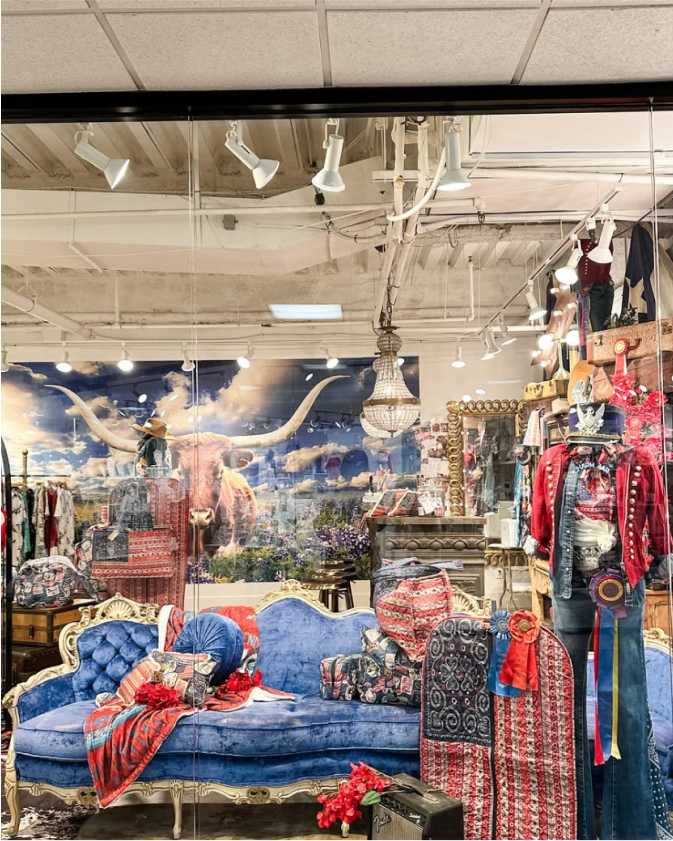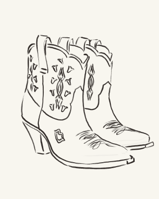 Classic Texas and western-inspired. Think suede, denim, flowy florals, and cowboy boots mixed with collected vintage jewelry and accessories.